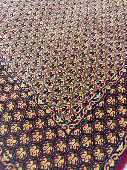 What sets this rug apart is its remarkable quality, boasting an astounding 900 double knots per square inch—a testament to the skill and dedication of the weavers who painstakingly created this masterpiece. It is no small feat that this rug took an entire year to complete, with every knot tied with precision and care, resulting in a rug of unparalleled quality and durability.