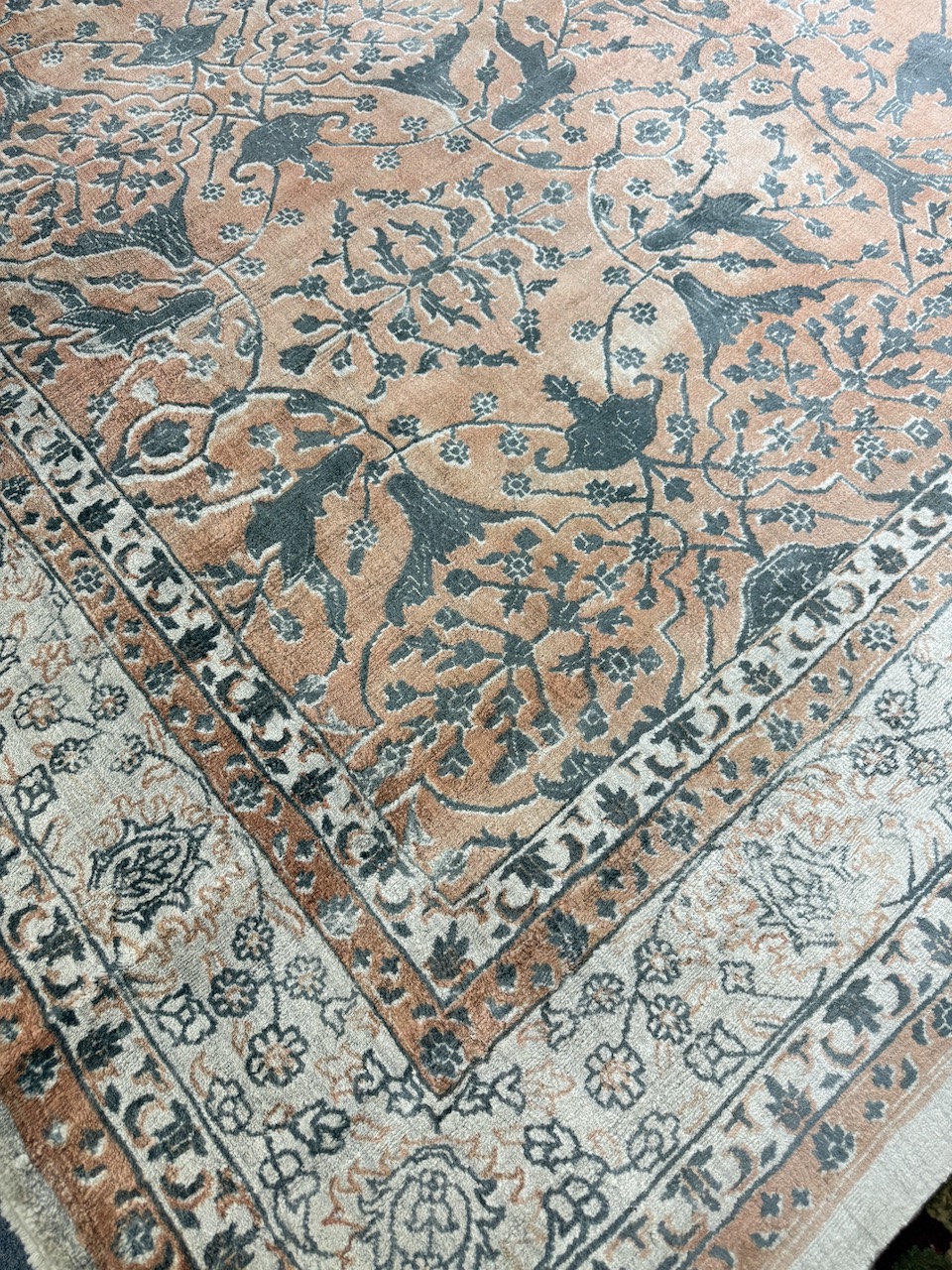 Hand-loomed rugs are crafted using a traditional weaving technique that involves interlacing the weft (horizontal) threads with the warp (vertical) threads. The weaver manually operates the loom to create the desired pattern and texture. The choice of materials for hand-loomed rugs can vary. Common options include natural fibers such as wool, cotton, silk, or a blend of these materials. Each material provides distinct characteristics in terms of texture, durability, and appearance.