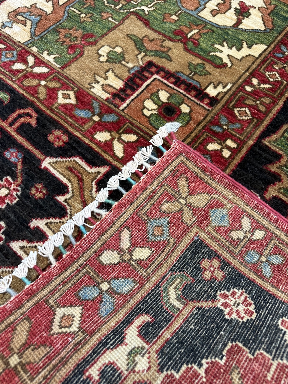As a large and unique piece, this rug transcends mere functionality; it is a work of art that enhances the aesthetic appeal of any space. Its presence can transform a room, adding character and warmth that only a handmade item can bring. Owning such a rug is not just about having a beautiful floor covering; it’s about cherishing a piece of cultural history and craftsmanship that is rare in today’s world. This rug is truly one of a kind, making it a treasure for collectors and a statement piece for anyone looking to enrich their home with artistic flair.